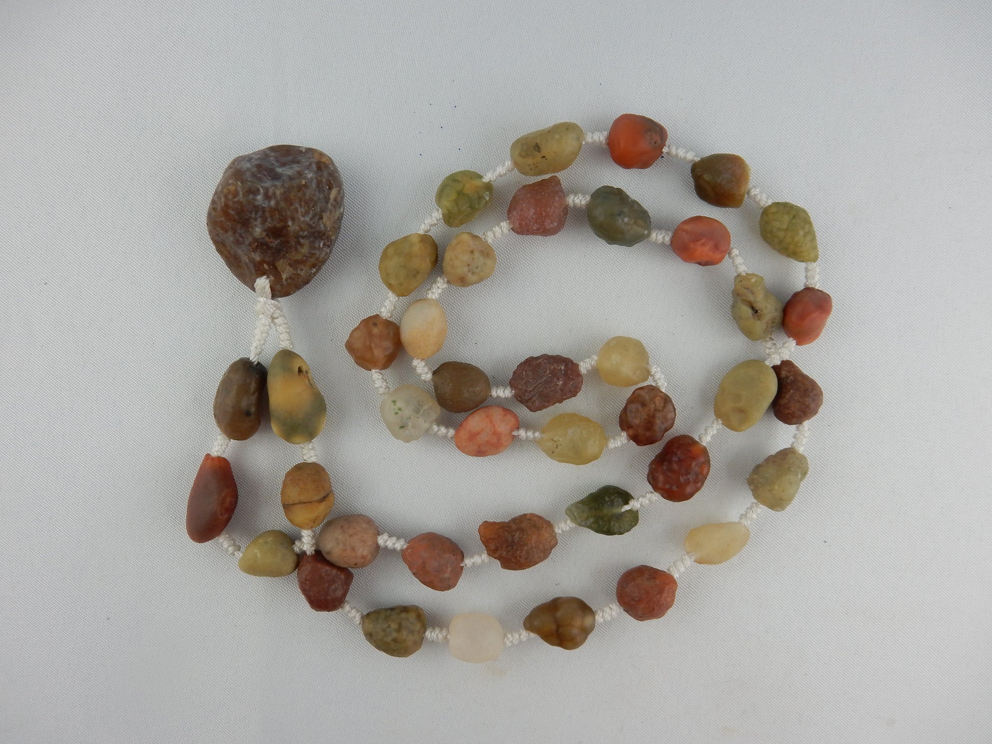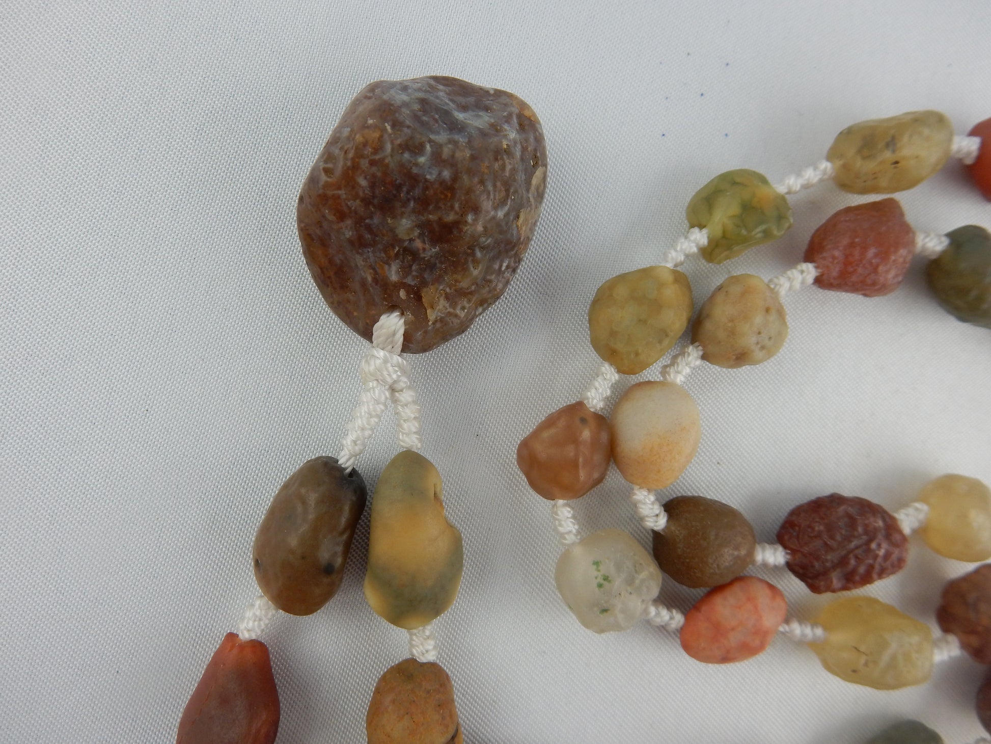 Natural gobi desert polished multi-coloured translucent interesting beads with larger end-piece agate